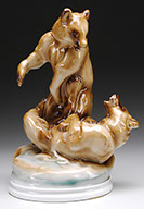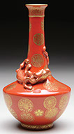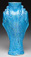 PORCELAIN VASE. 19th century, China. Cast as a pair of dragon carp with turquoise monochrome decoration. SIZE: 9-3/4″ h. CONDITION: Very good. 7-73389 (100-150)