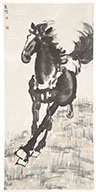 HANDSCROLL. China, ink and color on paper, depicting Jiangnan landscape, inscribed with a poem, signed “Xu Bangda,” with one seal, dated 2000. SIZE: 26-1/2″ x 51″. CONDITION: Good, mounted without scroll end. 7-73475 (300-500)