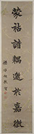 TWO CALLIGRAPHY SCROLLS. China. 1) Tang Yun (1910-1993), calligraphic writing of a seven-character verse, signed, with two seals. 2) Wang Fuchang (1880-1960), calligraphic writing in seal script of a five-character verse, dedicated to the fiftieth birthday of Mr. Gongliang, signed “Wang Ti,” with one seal. SIZE: 1) 54″ x 9-1/2″. 2) 36-1/4″ x 6″. CONDITION: Good. 7-73470 (300-500)