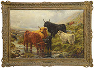 FREDERICK JOHN MULHAUPT (American, 1871-1938) “THE ICE-BREAKER’S PATH”. Oil on board Housed in a Guido 22/23 karat gold leaf frame in good condition Signed “Mulhaupt”, lower right Exhibition History: Boston Art club, exhibition of intimate pictures; North Shore Arts Association of Gloucester, 1999 SIZE: 8″ x 10″. Overall: 10-3/4″ x 12-3/4″ PROVENANCE: The John F. Gale Collection, Cambridge, MA CONDITION: Very good 9-27305 (20,000-30,000)