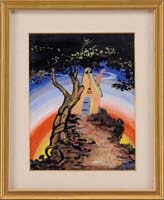 VINCENT ANDREW HARTGEN (American, 1914-2003) “AUROREAN PINES-MAINE 1975”. Fine watercolor shows a bright yellow sun shining through pine needle branches. Signed lower left and dated “1975”. Housed in a painted white frame. Back paper having the title, date and artist name in the artist’s hand. SIZE: Sight: 23-1/2″ x 35-1/2″. CONDITION: Very good. 9-91045 (800-1,200)