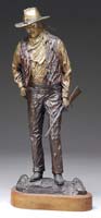 PAGINATED METAL OF THREE CHILDREN AROUND A CAULDRON. Figure shows two young boys and girl all wearing wooden shoes and typical Dutch outfits. They hold hand and hand and surround a shaped three-footed kettle. Naturalistic round base with no signature. SIZE: 8″ h x 7″ dia. CONDITION: Very good. 9-91374 (200-600)