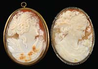 SEVEN ORIENTAL OBJECT D’ART. Lot includes: Two 4″ lacquerware combs; 2-1/2″ dia. carved ivory disc with intricate carving of man in landscape scenes; 2″ x 2″ carved ivory brooch with relief scene, house with figures. Housed in a gold metal frame. 3-3/4″ x 3″ ivory card case with carved scenes, one scene in cover is broken. 1″ ivory relief head. 3″ x 2″ tortoise shell and silver compact marked “800”. CONDITION: As noted above, otherwise good. 9-91199 (250-400)
