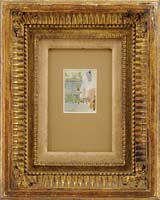 FIVE FRAMED MINIATURES. Second quarter 20th century. All painted on cellulite or bone, of varying periods and subject matter, in Florentine rococo gilt frames. SIZE: Largest: 8-1/2″ x 7-3/4″ overall. Smallest: 8″ x 5″ overall. CONDITION: All good to very good, artwork in very good condition with damage to one frame and minor wear to others. 9-91166 (400-800)