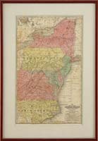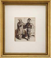 GEORGE THATCHER & CARROLL JOHNSON’S MINSTRELS POSTER. Unframed poster published by the Forbes Co., Boston & NY; Dated 9-21-89 #70. Scene shows a well dressed gentleman with cane and hat and also a full figure of him in his stage dress. Poster exclaims “George Thatcher America’s Greatest Minstrel and Punster”. SIZE: 38-1/2″ x 27-1/4″. CONDITION: Poster has been backed and shrink wrapped to foam board; There are tears, creases and losses primarily to edges and to the leg area to the standing figure. 9-91539 (300-500)