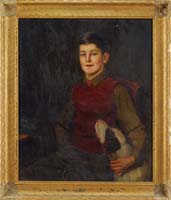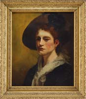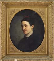 FOUR FRAMED MINIATURE PORTRAITS. Circa 1850-1950. The first and earliest, an oval three-quarter portrait of a woman with curled brown hair in a flowing blue dress wearing two gold hair pins and gold brooch, signed “Alex” above the proper left shoulder, mounted in original boule frame of the period. The second, a three-quarter portrait of a woman in a floral pink ribbon-tied bonnet and pearl necklace, signed “Selver” above the proper left shoulder, mounted in a brass frame. The third, an oval portrait of a haloed Madonna and Child, signed on the right side facing edge of portrait “L. Bollo”, mounted in a shaped bakelite frame. The fourth, an oval three-quarter portrait of a woman in ball gown with blue necklace and bejeweled hair, signed opposite the proper left cheek “Vebar”, mounted in a segmented simulated ivory frame. SIZE: First: 7-1/2″ x 6-1/2″ overall. Second: 4-1/4″ x 3″ sight. Third: 5″ x 4-1/2″ overall. Fourth: 4″ x 3″ sight. CONDITION: Nice overall, no issues noted. 9-91167 (400-800)