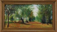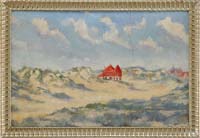 WAYNE BEAM MORRELL (American, 1923-)GLADIOLAS BY THE SEA. Oil on masonite coastal scene shows a path leading to the ocean with colorful flowers, large red Gladiolas are in full bloom. Signed on reverse. Housed in a gilt molded wood frame. SIZE: 12″ x 16″. CONDITION: Surface grime, otherwise very good. 9-91296 (800-1,200)