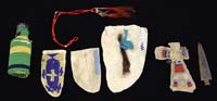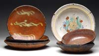 GROUP OF POTTERY AND STONE ARTIFACTS. Including: 3-1/2″ stone weight; 3-1/2″ l x 1″ stone boat shaped mortar; 2″ h x 4″ l figural bear stone pipe; Five pieces of Columbian style pottery of unknown age. CONDITION: Pottery pieces have some damage, otherwise good. 9-91154 (200-400)