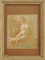 CARL GUSTAF SIMON NELSON (American, 1898-1988) LOBSTER CLAWS. Goauche still life scene shows a number of hanging lobster claws in various colors. Signed lower right “C G Nelson 52″. Housed in a modern frame with ivory liner. SIZE: Sight: 29-3/4″ x 21-1/4”. CONDITION: Very good to excellent. 9-91632 (800-1,200)