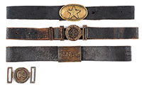 GROUP OF 4 CONFEDERATE ERA BELT BUCKLES AND BELTS.