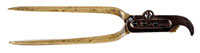 This is a rare example of a maker marked Confederate D-guard Bowie knife pictured on pg 192 of Confederate Bowie Knives, Melton, Phillips & Sexton, 2012: “T.L Pruett produced what are now the most well known of all Southern-identified blacksmith-made knives. An expert craftsman by any standard, his heavy classically Confederate D-guard knives were well made in fit and finish. The 1860 Autauga County, Alabama, census lists him as a ‘blacksmith’ in the town of Prattville. Like many other skilled craftsman, Pruett put his expertise to work for the war effort. The Bowie knives that he made for the local Autuaga Guards were described in this note, which ran in the Richmond Dispatch of September 18, 1861: ‘A formidable weapon: We were shown yesterday a knife, manufactured by Mr. Pruett, of Prattville which is the most formidable looking weapon in the shape of a knife we have seen yet. The Arkansas toothpick weighed two and one half pounds. It seemed to be of good steel, and appeared powerful enough to divide a Yankee completely…” We know Pruett delivered 39 knives by September of 1861 and this was probably his total production. Accompanied by Mr. Ballard’s hand drawn display card. PROVENANCE: Clark County Historical Society, Springfield, OH; Robert Abels Collection, 1962; pictured Fig. 27 “Bowie Knives”, Abels, 1962; Shannon Pritchard, Richard, VA; Lifelong collection of Roger Ballard, 2003. CONDITION: Very good overall and “as found”. 17-1/4″ blade has dark iron patina, rounded point, nicks on edges. Crisp markings. Oak grip has hand worn patina. Ferrules are slightly askew from compression of grip, so often seen on this maker. Regardless, this is among the best of the examples extant with good collector history. 52703-9 JS (7,000-9,000) – Lot 3499