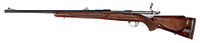 SN 64381 L72. Cal. 458 Win Mag. 24″ bbl. Ramp mounted bead front sight with folding leaf rear sight. FN 98 short extractor action with right side safety. Hinged floorplate, floorplate and trigger guard are engraved. Receiver, bbl and bolt have matching numbers. Monte Carlo cheekpiece fancy walnut stock. Features include hand checkering, gloss finish, swivel bases and orig Browning ventilated pad. 1972 Belgian manufacture. CONDITION: Very fine. 98% orig blue. Polished bolt handle shows spots of staining. Orig stock finish shows scattered marks. Mechanics are fine. Very good bright bore. 52697-11 DS (1,750-2,500) – Lot 2611