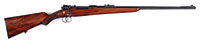 SN 4544. Cal. 6.5 Mannlicher Schoenauer. 22″ rnd bbl with ramp fixed blade front sight. Walnut stock with round knob pistol grip and small cheek piece. Checkered in 3-pt pattern at wrist and at fore grip. Matching numbered bolt, dbl set triggers mounted with early Leupold scope mount and Balvar scope. Lined steel butt plate with compartment for cleaning rods at center. All visible SN’s matching. CONDITION: Condition is fine retaining approximately 90% original barrel blue. Stock is fine with very minor handling marks, nice open pores, retains approximately 90% of it original finish. Bores very good, mechanics are crisp. Scope is clear. 52546-1 JSL (1,750-2,250) C&R – Lot 2668