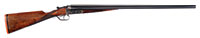 SN 123167. Cal. 12 ga. 2-3/4″ Chambers. 30″ Shoe lump bbls with matted, concave rib are marked with makers name on top of each bbl, and with steel information around breech ends, ivory beads. Bbl flats are stamped with imperial German nitro proofs and “PRUSSIA”. Extractor is stamped “70”. Case hardened scallop backed boxlock action features non-automatic safety, crossbolt third fastener, side clips, and dbl triggers. Action is engraved with 50% coverage sprays of scroll within small scroll and geometric borders. “J. P. SAUER & SOHN, SUHL” is on each side. Steel trigger guard with scroll on bow, has SN on tang. Very nicely streaked European walnut straight grip buttstock measures 14-1/2″ over checkered wood butt, flanked by carved oak leaves between horn heel and toe plates. Side panels are checkered and also carved with oak leaves, and are tipped by lozenge shaped inlet horn drop points. Point pattern checkering with line borders at grip is very cleanly cut. Matching splinter forend with inlet horn schnabeled tip has Deeley release. Bore diameter: left -.720, right – .722. Bore restrictions: left – .028 (IMod), right – .003 (IC). Wall thickness: left – .034, right – .032. Drop at heel: 2-3/8″, drop at comb: 1-7/16″. Neutral cast. Weight: 7 lbs. 9 oz. LOP: 14-1/2″. PROVENANCE: Estate collection of Dana Tauber. CONDITION: Exceptionally fine, very close to “as new”, with only a few of the faintest marks on all wood and metal surfaces. Action has a heavy coat of protective lacquer. Bores are excellent, with a hint of frosting. Action tight, but sluggish due to congealed oil. Special Note: This item(s) contains plant or animal properties that may be covered by the Endangered Species Act (ESA). Please read the Conditions of Sale, section 15, for more information regarding the Endangered Species Act, and your responsibilities as a buyer. 51980-5 MGM (3,500-5,500) C&R; ESA – Lot 1697