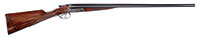 SN 259092. Cal. 20 ga. 2-3/4″ Chambers. 26-3/4″” Shoe lump bbls have slightly raised matted rib. Steel information is on tops of bbls and makers name as well as bands of geometric engraving are around breech ends. Bbl flats are stamped with imperial nitro proofs. Proof date of 5/31 is on bottom of right bbl. SN is on left bbl. Case hardened, boxlock action features non-automatic safety, crossbolt third fastener, side clips, cocking indicators, and dbl triggers. Action is engraved with sprays of scroll within geometric borders. Makers name and address are on each side. Trigger plate is engraved with well detailed scene of grouse (?) flying into meadow. Case hardened trigger guard has scroll on bow and SN on tang. Relatively plain European walnut straight grip buttstock measures 14-5/8″ over ribbed composition buttplate with Sauer logo. Point pattern checkering is at grip, and a large vacant gold oval is on toe line. Matching splinter ejector forend has Deeley release. Bore diameter: left -.622, right – .621. Bore restrictions: left – .020 (mod), right – .012 (lt mod). Wall thickness: left – .030, right – .030. Drop at heel: 2-3/8″, drop at comb: 1-5/8″. Neutral cast. Weight: 5 lbs. 14 oz. LOP: 14-5/8″. PROVENANCE: Estate collection of Dana Tauber. CONDITION: Very fine. Bbls retain over 90% orig blue with considerable flecking on rear third. Action retains 50 – 60% orig case hardening color, silvered on tangs, fences, and bottom. Stocks retain approx 90% orig finish, worn through from normal hand wear at grip. Checkering lightly worn. Gold oval is a replacement. Sling eye has been removed from bottom rib of bbl, plug screws installed. Bores are excellent. Mechanically fine. 51980-38 MGM (2,500-3,500) C&R – Lot 1700