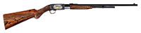 SN 12803. Cal. 22. Spectacular trombone with 21-3/4″ tapered rnd bbl, sporting front sight & orig sheet metal, V-notch rear sight. Mounted with incredible French or Circassian walnut with checkered, bullet-shaped forearm and bag-shaped grip buttstock that has checkered butt. Receiver is incredibly engraved by master engraver Angelo Bee and signed on both sides. Engraving consists of full coverage foliate arabesque patterns surrounding the very large vignette on the left side of a swooping owl attacking a rabbit, all in raised gold and great detail in an incredibly detailed, bank-note style background of a field scene. This vignette is surrounded by inlaid raised gold wire. Right side is engraved to match with the large vignette of a leaping fox trying to catch a Bobwhite quail, both in raised gold in an equally detailed field scene. This vignette also is surrounded by raised gold wire. Both vignettes are with French grey background. Top of the receiver is engraved with the oval vignette of 2 raised gold partridges in a detailed rocky scene. Trigger plate & trigger bow are engraved to match. Muzzle & chamber ends of the bbl are inlaid with fine gold wire. Top of the bbl over the chamber area, left top front of the receiver and bolt all have Belgian proofs. CONDITION: Extremely fine plus. Overall retains about 99% plus of its fine custom finish to both metal & wood with strong dark blue and bright hand rubbed oil finish on the wood. Checkering is crisp & clean showing only faint diamond point wear. Forearm has a small bruise on each side. Mechanics are crisp, brilliant shiny bore. 52502-1 JRL (7,000-10,000) C&R – Lot 1681