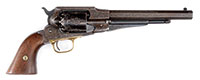 SN 1869. Cal. 44. Standard configuration with 8″ oct bbl, 2-line address “PATENT DEC 17 1861 / MANUFACTURED BY REMINGTONS’ ILION. N.Y.”. Only about 6,000 of this model was made 1861-1862 and almost all made for Army contracts. This SN dates this example among the very earliest production.This gun has weak but discernible inspector’s cartouches on both grips and sub-inspector letters found on most metal parts. PROVENANCE: The collection of Robert Roughton. CONDITION: `Good overall, all matching, SNs found on bbl and frame. Dark brown/plum patina overall. Grips fairly well fit with chips at front toes. Inspector cartouches are weak but discernible in outline. Tacking marks. Mechanically functional with well defined rifled bore. 52332-11 JS (800-1,250) – Lot 3176