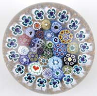 TWENTY-THREE SANDWICH TYPE CHRISTMAS SALTS. Lot consists of twenty-three Sandwich Christmas salts in various colors including cranberry, cobalt, electric blue, amber, canary, amethyst, teal blue, milk glass, clear and a paint decorated example. SIZE: 2-1/2″ t. CONDITION: Very good to excellent with one missing a top and slight corrosion to lids. 5-63263-1 (600-900)
