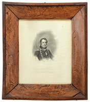 RARE CIRCA 1820 ENGRAVING OF STEPHEN DECATUR, FRAME MADE FROM DECKING OF HIS FRIGATE “UNITED STATES”.