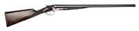 SN 58587. Cal. 12 ga. 2-3/4″ Chambers. 28″ Bbls with ventilated rib are choked skeet and skeet, and are marked with usual Browning Arms addresses and information on top bbl. Typical gray finished action is engraved with deeply cut, large, scrolled acanthus with shaded background, framing vignettes of five pheasants on left, four ducks in marsh on right, and a pair of quail on bottom of action. A pair of rabbits is on trigger guard bow. Nicely marbled and well figured claro walnut long tang round knob buttstock measures 14-3/8″ over brown leather covered pad. Point pattern checkering with double line borders is at grip. One piece rounded field forend matches well. Drop at heel: 2-3/8″, drop at comb: 1-1/2″. Weight: 7 lbs. 11 oz. LOP: 14-3/8″. Early style rounded Browning tan case is lined in royal blue cloth and contains a pair of snap caps. PROVENANCE: Collection of Charles A. Lamb. CONDITION: Excellent. Bbls retain approx 95% of what appears to be their orig blue. Coin finish of action is excellent. Trigger retains most of its gold plating. Stocks retain most of their orig finish with a considerable number of light scratches and marks, checkering dark. Bores are excellent. Action slightly loose when open, tight when closed. Ejectors are in time. Trigger works. Exterior of case is excellent with a few light scuffs. Interior cloth is very fine with some rubs through and compressions from contact with gun and bbls. One partition is loose. 4-51892 MGM205 (3,000-5,000) – Lot 3595