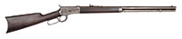 SN 611744. Cal. 44 WCF (44-40). Standard grade carbine with 20″ bbl, full magazine, barleycorn front sight and 2000 yd carbine ladder rear sight. Left side of receiver has a staple and ring. Mounted with uncheckered straight grain American walnut with straight stock and carbine buttplate that has a trap. Accompanied by a Cody Firearms Museum letter which identifies this carbine in cal 44, received in warehouse Oct. 12, 1906 and shipped Oct. 16, 1906 to Order number 77863. PROVENANCE: Tommy Rholes Estate Collection. CONDITION: Extremely fine. Bbl and magazine tube retain 97-98% crisp orig blue; receiver retains about 95% strong orig blue with light sharp edge wear, some minor flaking and a halo from the saddle ring; lever & hammer retain virtually all of their brilliant orig case colors; buttplate retains virtually all of its orig case colors, brilliant on the tang, lightly faded on the face, showing wear on the heel. Stock has a small bruise and a couple small scratches and retains about 98% strong orig finish; forearm has a few light scratches and a couple of nicks and retains most of its orig finish with a raised grain appearance on all the wood. Mechanics are crisp. Brilliant shiny bore; may be unfired. 4-50506 JR30 (20,000-35,000) – Lot 1022