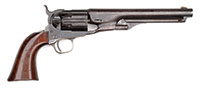 SN 8612. Cal. 44 RF Henry. Standard Henry rifle with 24-1/4″ oct bbl that has integral magazine, late style square back German silver front sight and 900 yard Henry ladder rear sight. Receiver is without dovetail in the top flat. Mounted with very nicely figured, uncheckered American walnut buttstock that has straight grip and crescent brass buttplate with pointed heel and small trap containing an orig brass & iron 4-pc cleaning rod. Left side of buttstock has a factory sling swivel with corresponding loop on left side of bbl. SN is found in usual places, top flat of bbl between rear sight & receiver, left side of lower tang under the wood, inside top tang channel of buttstock and inside toe of buttplate. Round section of bbl, under the loading sleeve, is marked with assembly number “1755” with matching number on rear face of loading sleeve. All screws are orig Henry type screws. There were about 11,000 Henry rifles produced between 1860 and the end of the Civil War, the vast majority of which saw service during the war. The U.S. military purchased 1,731 of them with the others being privately purchased. Regardless of their martial status these rifles that fall within the Civil War era SN ranges are rarely ever found with high orig finish. Subsequent to the Civil War the Henry rifle was extremely popular on the American frontier and continued in service in equally harsh circumstances. PROVENANCE: Tommy Rholes Estate Collection. CONDITION: Very fine, all matching. Bbl & magazine tube retain 30-40% strong orig blue with the balance turned to plum color; receiver & sideplates retain strong edges, showing only light wear and only a couple of very tiny nicks & scratches and retain a wonderful dark mustard patina; buttplate is matching patina; hammer retains faded case colors; lever is a plum patina. Buttstock is sound with a few light nicks & scratches and retains about 70% orig finish. Mechanics are fine, bright shiny bore with a few scattered spots of pitting. 4-50560 JR3 (30,000-50,000) – Lot 1005