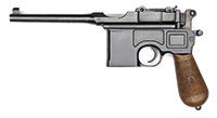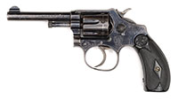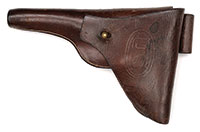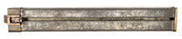 SN 579080. Cal. 44 WCF (44-40). Standard grade carbine with rare 15″ bbl, full magazine, barleycorn front sight & 900 yard carbine ladder rear sight. Left side receiver has a staple & ring. Mounted with nicely figured, slab sawed American walnut with straight stock & carbine buttplate with trap. Left side of the buttstock heel is stamped “WF R 40″, no indication of the meaning of this mark. Receiver is 3rd type with integral rail & 3rd type dust cover. Accompanied by a Buffalo Bill Historical Center Museum letter, which identifies this carbine in 44 cal with 15” bbl, shipped on June 1, 1904. Also accompanied by a Department of the Treasury, Bureau of Alcohol, Tobacco & Firearms letter which exempts this carbine from the purview of the National Firearms Act which allows it to be sold as a curio under the laws & regulations governing such sales. It is rare to find a trapper carbine in completely orig, serviceable condition. Most of them were sold to Central & South American users where they saw hard & continuous service in jungle conditions, some are still in use today. Generally those trapper carbines which have been repatriated to the U.S. show their extreme hard use and are usually in near relic condition. PROVENANCE: Tommy Rholes Estate Collection. CONDITION: Fine, bbl & magazine tube retain 10-15% orig blue in the most sheltered areas with the balance a plummy brown patina. Receiver also retains blue in sheltered areas with the balance a plummy brown patina & a halo from the saddle ring. Forearm has a hairline on the right side below the bbl channel at the receiver, otherwise wood is sound with light nicks & scratches, some oil staining around the receiver & tangs and overall retains about 90% of a fine, old restored finish. Mechanics are fine. Strong bore with decent shine & moderate pitting. Cleaning rod is fine. 4-50753 JR58 (20,000-35,000) – Lot 1021