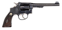 SN 9250. Cal. 44 RF Henry. Standard late Henry rifle with 24-1/4″ oct bbl that has integral magazine, late style square back German silver front sight and 900 yard Henry ladder rear sight. Top flat of receiver is without dovetail. Mounted with uncheckered, nicely figured American walnut buttstock that has straight grip and late style crescent brass buttplate with pointed heel and small trap containing an orig 4-pc brass & iron cleaning rod. Left side of wrist is stamped with the tiny inspector initials “A.W.M.”. Left side of buttstock has a factory sling swivel with corresponding sling loop on the bbl. SN is found in usual place on top flat of the bbl between rear sight & receiver, left side of lower tang under the wood, inside top tang channel of buttstock and inside toe of buttplate. Screws are all orig type Henry screws. Round section of bbl, under loading sleeve, is marked with assembly number “2255”, with matching number on rear face of loading sleeve. Accompanied by a Springfield Research Service letter which identifies this rifle, by SN, as having been issued to Pvt. John W. Williamson of Company H, 3rd U.S. Veteran Volunteer Infantry. Pvt. Williamson re-enlisted in the 3rd Veteran Volunteer Infantry on March 14, 1865 at Philadelphia and was discharged at Springfield, IL on March 13, 1866. His prior service was with the 29th Pennsylvania Volunteer Infantry from July 1861 – July 1864. The 3rd Veteran Volunteer Infantry was organized in early 1865 with the intention that they would become “shock troops” armed with breech-loading repeaters. The surrender of the Confederacy in April of 1865 left them with little to do except garrison & guard duty around Washington, D.C. until they were mustered out of service. A condition of enlistment in this unit was that at the expiration of honorable service the individual troops could retain their arms & accouterments. Most of them apparently did so and these Henry rifles are usually found showing heavy wear with little orig condition. Pvt. Williamson was born in Philadelphia, PA. According to The Henry Rifle, Quick, the U.S. military purchased 1,731 Henry rifles in two different batches with the second type falling generally within the 7000-9000 serial range and it is believed that there were about 600 rifles in this order. These late martial Henrys are usually overlooked by collectors as the only identifying martial feature were the tiny initials on left side of the wrist. These initials were usually lightly struck, were very tiny and most often are worn away. PROVENANCE: Tommy Rholes Estate Collection. CONDITION: Very fine, all matching. Bbl & magazine tube retain strong blue in the gullets and sheltered areas with the balance a strong blue/brown patina; receiver & sideplates show lightly worn edges with a few nicks & scratches and retain a dark mustard patina; buttplate is matching patina. Buttstock is sound with a hand worn patina and traces of orig finish showing through, possibly cleaned a long time ago. Mechanics are fine, strong bright bore with scattered fine pitting. 4-50573 JR2 (35,000-50,000) – Lot 1004
