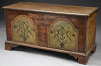 SN 19331. Cal. 44 RF Henry. Standard grade carbine with 20″ bbl, full magazine, integral front band/sight and two position carbine flip rear sight; left side of receiver has a staple end ring. Mounted with uncheckered straight grain American walnut with straight stock and crescent brass rifle buttplate with trap. Left side of lower tang, under the wood is marked with the serial number and the inspector initials “CC”. Top tang channel of buttstock and inside toe buttplate have matching SN to the rifle. Bbl address contains Henry’s and King’s patents and is completely legible. These early ’66 carbines were the first repeating short arms available to the American public and were in great demand on the American frontier during the Great Westward Expansion. They saw continuous hard service under extreme conditions usually with little or no maintenance and are rarely found today with any original finish. They are especially difficult to find with a fully legible bbl address. PROVENANCE: Tommy Rholes Estate Collection. CONDITION: Fine, all matching. Bbl and magazine tube retain traces of original blue in the most sheltered areas, being mostly a smooth, even, dark plummy chocolate patina; receiver & side plates retain strong edges, showing only light wear and retain a wonderful, smooth dark mustard patina. Screw heads retain generous amounts of orig blue; receiver & side plates also show only two or three small scratches on each side; buttplate is a matching patina. Stock has a saddle ring wear halo on the left wrist with a few small chips in the same area. Wood is sound with light nicks and scratches and retains a dark hand worn patina with light added finish. Mechanics are fine. Strong, sharp, dark bore with moderate pitting. 4-50651 JR18 (12,500-22,500) – Lot 1010