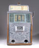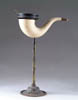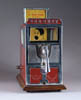 POSSIBLE PATENT MODEL FOR STILL. No patent tag. Two-piece brass model for still consisting of cylindrical tank on three feet connected via a funnel and tube to another cylindrical tank, terminating via another coiled tube surrounded by another smaller cylindrical tank. SIZE: 9-1/2″ w x 7-1/4″ h. CONDITION: Appears very good. 1-3182 (50-100)