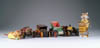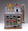 LOT OF FIVE BAR BACK DISPLAYS. Includes ceramic figural displays for Windsor Canadian Whiskey, I.W. Harper, Irish Mist, and Old Crow. Also includes a Johnny Walker composition display on wood base. SIZE: Approximately 15” t. CONDITION: Generally good. PF 9-97007 (100-200)