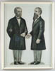 A. T. & T. LINEMAN PRINT. Black and white print by F.T. Merrill depicting man in snowstorm checking the telephone lines. SIZE: 20″ w x 25″ h. CONDITION: Generally good. 1-1904 (100-150)
