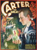 CARTER THE GREAT MAGICIAN POSTER. Colorful stone litho of various magic act imagery captioned “Do the dead materialize? The absorbing… question of all time.” SIZE: 80”w x 106” t. CONDITION: Excellent, linen mounted in two sections. 1-3194 (1200-1400)