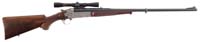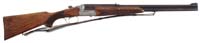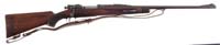 *FINE RIGBY BOLT ACTION SPORTING RIFLE. Cal. 30-06. SN 7620, Rigby #3091. Beautiful half stock sporting rifle, built on a standard Mauser action with stripper slot & thumb notch, with 25” tapered rnd bbl, with Jeffery-Farquhrason style ramp front sight and Rigby’s 2-leaf platinum line express rear sight with third leaf a 1,000 yard ladder sight. Top of bbl, in front of sight, has maker’s name & address. Striker has a Rigby’s Patent peep sight dovetailed into rear edge. It has standard Mauser trigger guard & floorplate. Mounted in a beautiful tiger-striped, 1-pc walnut stock with checkered forestock & rnd knob, pistol grip butt, 14-1/2” over a thick, solid, red pad. Bottom of bbl has a sling eye with a corresponding stud in the stock. CONDITION: Very fine plus. Bbl retains most of its bright orig factory finish with slight muzzle edge wear. Receiver & bolt retain most of their orig finish with some thinning over rear bridge. Stock is sound and retains most of a professionally restored finish. Mechanics are crisp, bright shiny bore. 4-59207 JR693 (3,500-5,000)