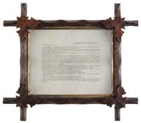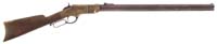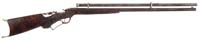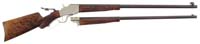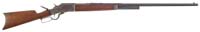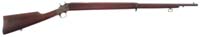 EXPERIMENTAL OR PROTOTYPE WINCHESTER MODEL 01 LEVER ACTION SHOTGUN. Only specimen in existence we know of. Cal. 10 ga. SN 77878. Standard grade shotgun with 32” plain rnd bbl, sgl bead, half magazine, mounted with uncheckered, slab sawed, American walnut with forearm side panels between the bbl & magazine tube and rnd knob pistol grip stock, 13-1/4” over a Winchester embossed hard rubber buttplate. Left side of receiver has the intertwined “WRACO” initials. Receiver has unique feature of a raised area, approx. 3/8” high with tapered sides and a concave groove in top. This was apparently an attempt at a sight or may have been a receiver intended for use with the experimental 70-150 cartridge. CONDITION: Fine to very fine. Bbl retains 92-93% strong orig blue with some scrapes & scratches and thin spots over forearm area. Magazine tube retains about 85% strong orig blue with wear, scrapes & scratches over back 1/3. Receiver retains 85-90% strong orig blue with some fine pitting on left side and fine pinpoints of rust on right side. Wood is sound with left side panel showing moderate to heavy wear and some oil staining on right side. Buttstock has a series of five small dents on left side, otherwise with light handling & use marks and wood overall retains a smooth, hand worn patina. Mechanics are fine, bright shiny bore with some minor orange peel effect, just in front of chamber. 4-59218 JR651 (6,000-10,000)