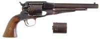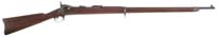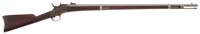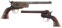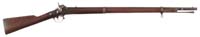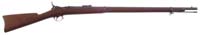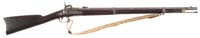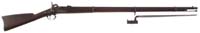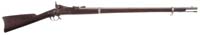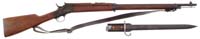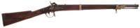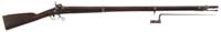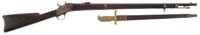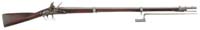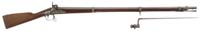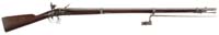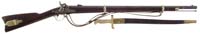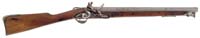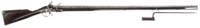 ROLFE PERCUSSION BLUNDERBUS WITH SNAP BAYONET. NSN. 60 Cal. 12-1/4” rnd iron bbl. Marked “ROLFE” on the lockplate with a crowned broad arrow beneath the drum. There are Birmingham proof marks on the left side of the bbl. The bayonet has a 9-3/8” triangular blade with short, unstopped fullers at the tip. The dark wood ramrod has a brass tip and a covered ball screw. The wrist is checkered. CONDITION: Gray patina with light to moderate pitting, slightly heavier on buttplate and triggerguard. Stock has been broken through the lock area. Mechanically fine. Wm. Hancock Collection 4-58572 (1,500-2,500)