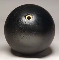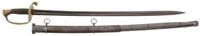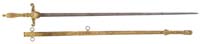 FINE CANE AIR RIFLE. NSN. 38 Cal. & 42 Cal. 22” rnd bbl. The black body of the cane contains a brass band that retains a rifled brass bbl. The tip has a brass cover attached to the loading rod, which fits inside the bbl until used for firing. It has a turned ivory pommel. It has a large sight at the rear end of the bbl or about the middle of the cane. Unscrewing the inner bbl discloses a 42 caliber smoothbore bbl that theoretically could be used also. A replica operating key accompanies the cane. The square iron end of the key is inserted into the square hole on the case below the rear sight and is used to cock the mechanism. When the trigger, two inches further forward on the case, is pressed, the air in the handle of the cane discharges the ball. CONDITION: Some minor chipping to the black finish of the body and natural cracks to the ivory pommel. Mechanism works but the seals have not been tested due to lack of a pump. 4-56696 FS779 (2,000-2,500)