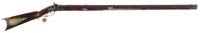 FINE MOORE DOUBLE BARREL PERCUSSION RIFLE/SHOTGUN. NSN. 36 Cal / 12 ga. 30” ribbed bbls. Marked “MOORE & CO.” on both lockplates, “LAMINATED STEEL” on top of the bbl rib. The blackened wood ramrod has a brass tip and a covered ball screw. A rnd patchbox is installed on the right side of the stock. The buttplate is a large crescent style. The triggerguard has a pistol grip extension at the rear. CONDITION: Excellent. 95% of the bright brown finish on the bbls and rib. 95% brilliant casehardening on the lockplates, patchbox and buttplate. Triggerguard has traces of finish but mostly has a brown patina. Mechanically excellent. 4-59042 FS783 (2,000-3,000)