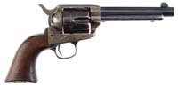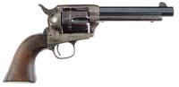 RARE, FINE HARPERS FERRY MODEL 1805 FLINTLOCK MARTIAL PISTOL. SN 1820. 58 Cal. 10-1/8” rnd bbl. Marked “HARPERS / FERRY / 1808” vertically at the rear of the lockplate. A large US eagle over “US” is on the lockplate in front of the hammer. ‘US” and “P” sunken cartouches are at the rear of the bbl in front of the serial number. The left flat of the stock has a script “V” above a script “JS”. Only 1,208 of these pistols were made in 1808. The serial number reflects the number of the pair made since the beginning of the contract in 1805. The lockplate is marked “WV” inside. There are no assembly initials on any of the parts, but the pan appears to be orig and there is no sign of welding on the bbl. CONDITION: Smooth gray patina with scattered light pitting on the bbl and lock. Brass has minor nicks and dents, but is generally fine. Wood has sharp edges with minor nicks and dents and retains most of its orig finish. 4-60229 FS730 (14,000-18,000)