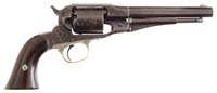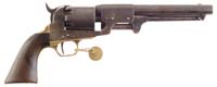 NORTH MODEL 1808 NAVY FLINTLOCK MARTIAL PISTOL. NSN. Cal. 66. 10-1/8” rnd bbl. Marked “S·NORTH / BERLIN / CONN.” vertically at the rear of the lockplate, with an eagle over “U.STATES.” in front of the hammer. There is a belt hook on the left side, held in place by the rear lock screw. There are no inspector marks or cartouches. The lock is a good reconversion using some old parts. Ramrod and belt hook are replacements. CONDITION: Brown patina overall, with light surface rust and pitting. Wood has cracks below the lock plate and at the rear bbl pin. Minor chips elsewhere. Stock has been repaired and sanded. Mechanically good. 8-76151 FS30 (5,000-8,000)