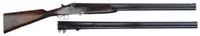 *VERY EARLY REMINGTON MODEL 32 OVER/UNDER SHOTGUN. Cal. 12 ga. SN 305. Fine early Remington with 30” superposed bbls choked FULL/MOD with factory ventilated rib, dbl ivory beads, ejectors & sgl selective trigger. It has open side ribs. Mounted with nicely figured, flame grain, American walnut with checkered, wrap around forearm & pistol grip stock, 14” over a Hawkins waffle pad. Receiver is engraved with a pointer on left side, setter on right side and bust of a spaniel holding a duck on bottom. Bore diameter: top – .728, bottom – .727. Bore restrictions: top – .016, bottom – .034. Wall thickness: top – .035, bottom – .041. Drop at heel: 2-1/4”, drop at comb: 1-7/16”. Weight: 7 lbs. 11.52 oz. CONDITION: Very fine. Retains a complete, very professional restoration to both metal & wood. Blue is bright, stock finish is strong. There are two hairlines back of top tang & another back of bottom tang, otherwise wood is sound. Mechanics are fine, bright shiny bores. 4-58377 JR571 (2,000-2,500)