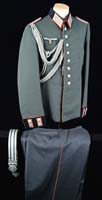 RARE AND EXTREMELY FINE GERMAN WHEELOCK. NSN. 62 Cal. 38-3/16” part oct bbl. Marked with two cartouches on top of the bbl. One with the letter “L” above the shoulder of a standing knight. The other is a shield divided diagonally with lilies in the lower section. The date “1603” is engraved on the bbl above these marks “MUSEE / DE / L’ARTle” in an oval border on the bbl and stock. The mark on the bbl is slightly smaller than the one on the stock. This gun purportedly was repatriated to Germany by Herman Göering as being one of the arms taken by Napoloeon during his conquest approximately 140 years earlier. The forearm was cut to 19-1/2” from the muzzle. The stock is inlaid from end to end with engraved panels of ivory and scroll lines of bone or ivory. The ramrod tip, tailpipe, trigger plate, buttplate and panels on the sides of the bbl tang are plaques of ivory with various engraving. There are various grotesque animal heads at the ends of the middle-sized inlays. A courtier is engraved on the tailpipe. The butt has been trimmed and the orig ivory buttplate reinstalled. The lock is equipped with both a Wheelock and a matchlock cock which are engraved in animal form. The plate itself is plain. The springs have carvings at the base. The brass rear sight and the iron triggerguard are both relief carved. The latter with a series of balls. CONDITION: Smooth gray patina on all metal parts. Wood is missing several slivers along the forearm one of which has removed the ivory string inlay along the bottom. Also minor cracks around the tailpipe. Several of the scroll inlays missing. Mechanically fine. 4-60732 FS703 (25,000-50,000)