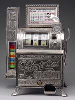 GREEN FLAT TOP ARCADE CAB STILL BANK. The classic life like version of the flat top cab from the 1930s is rare due to color and being a still bank. In outstanding untouched condition, this toy would really “scream” with a minor cleaning to bring out the true color and luster of the paint. The nickel plated driver, cowl lights and cast wheels, including the spare, further enhance the appeal of this toy/bank. Toy still retains its original Arcade decal and nickel plated trap. SIZE: 8″ l. PROVENANCE: From the collection of the late Larry Seiber of San Jose, CA. CONDITION: Near mint. 1-9084 (3,000-4,000)