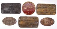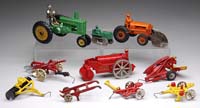 EXTREMELY LG. LOT OF ARCADE ROAD SIGNS & GAS PUMPS. Fine lot consisting of three cast iron gas pumps, thirteen road signs, iron waste paper can and iron mail box, iron stop light, iron fire box, etc. This is an extremely large lot of very fine pumps and signs. Also contains two Arcade brass factory mementos and a tin and iron working Arcade gas pump. SIZE: Largest being 7-1/4″ h. PROVENANCE: From the collection of the late Larry Seiber of San Jose, CA. CONDITION: Overall very good to near excellent. 1-9138 (1,000-1,500)