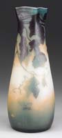 MT. WASHINGTON LAVA VASE. Rare Mt. Washington lava glass vase begins with a dark background with slashes of green, purple, blue, and pink. SIZE: 6″ t. CONDITION: Very good to excellent. 5-69114 (2,000-4,000)