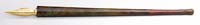 TIFFANY STUDIOS PINE NEEDLE PEN. Rare desk accessory item has a pine needle pattern with a beautiful green/brown patina with accents of red. SIZE: 6-3/4″ with nib. CONDITION: Very good to excellent. 5-68962 (1,000-1,200)