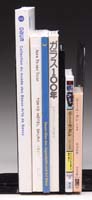 MIXED LOT OF SIX MINIATURE LAMPS. 1) SI-230. White milk glass; Acanthus base with green decor and replacement shade. Nutmeg burner. 2) SI-259. Heavily embossed frosted crystal with gold highlighted grape and leaf design. Acorn burner. 3) SI-286. Clear glass Cosmos with painted decor. Nutmeg burner. 4) SI-286. White milk glass Cosmos with fired on painted decor and pink bands. Nutmeg burner. 5) SI-297. White milk glass melon ribbed base with replacement shade. Acorn burner. 6) SII-259. Heavily embossed white milk glass lamp with flowers and ribbing. Hornet burner. SIZE: 6-3/4″ to 8-1/2″ t. CONDITION: All lamps carry some form of damage or wear to their painted decor including two contemporary shades. 5-68157, 5-68180-1, 5-68175 (200-400)