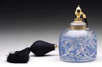 STEVENS & WILLIAMS POMPEIAN SWIRL COLOGNE. Lovely Stevens & Williams cologne bottle has round body with Pompeian swirl in colors of green shading to deep salmon. Bottle is finished with a sterling silver repose hinged cap and retains its original glass stopper. SIZE: 4-1/2″ t. CONDITION: Very good to excellent. 5-69834 (300-500)