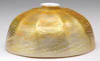 TIFFANY STUDIOS MOCK TURTLE BACK BASE. Handsome turtle back style base has three arm supports, single socket and a beautiful gold dore finish. The base is signed “Tiffany Studios New York 608” and the padded switch is marked “Arrow”. SIZE: 11″ t. CONDITION: Very good to excellent. 5-68697 (700-1,000)