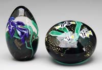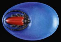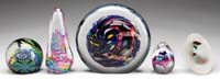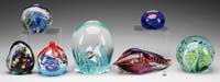 CLICHY MINIATURE PAPERWEIGHT. Concentric millefiori paperweight in colors of red, white and purple on a blue opaque ground. SIZE: 1-3/4″ dia. CONDITION: Very good to excellent. 5-69754 (300-500)